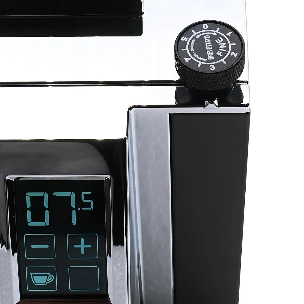 Über das intuitiv bedienbare Touch-Display können zwei verschiedene Portionsgrößen eingestellt und abgespeichert werden. Natürlich ist auch jederzeit eine manuelle Dosierung möglich. Durch die ACE Technologie aus den Profimühlen von Eureka wird das Verklumpen und die elektrostatische Aufladung des Mahlguts verhindert, das dadurch sehr homogen in den Siebträger fällt. Die Siebträgergabel ist höhenverstellbar und bei Bedarf sogar abnehmbar.