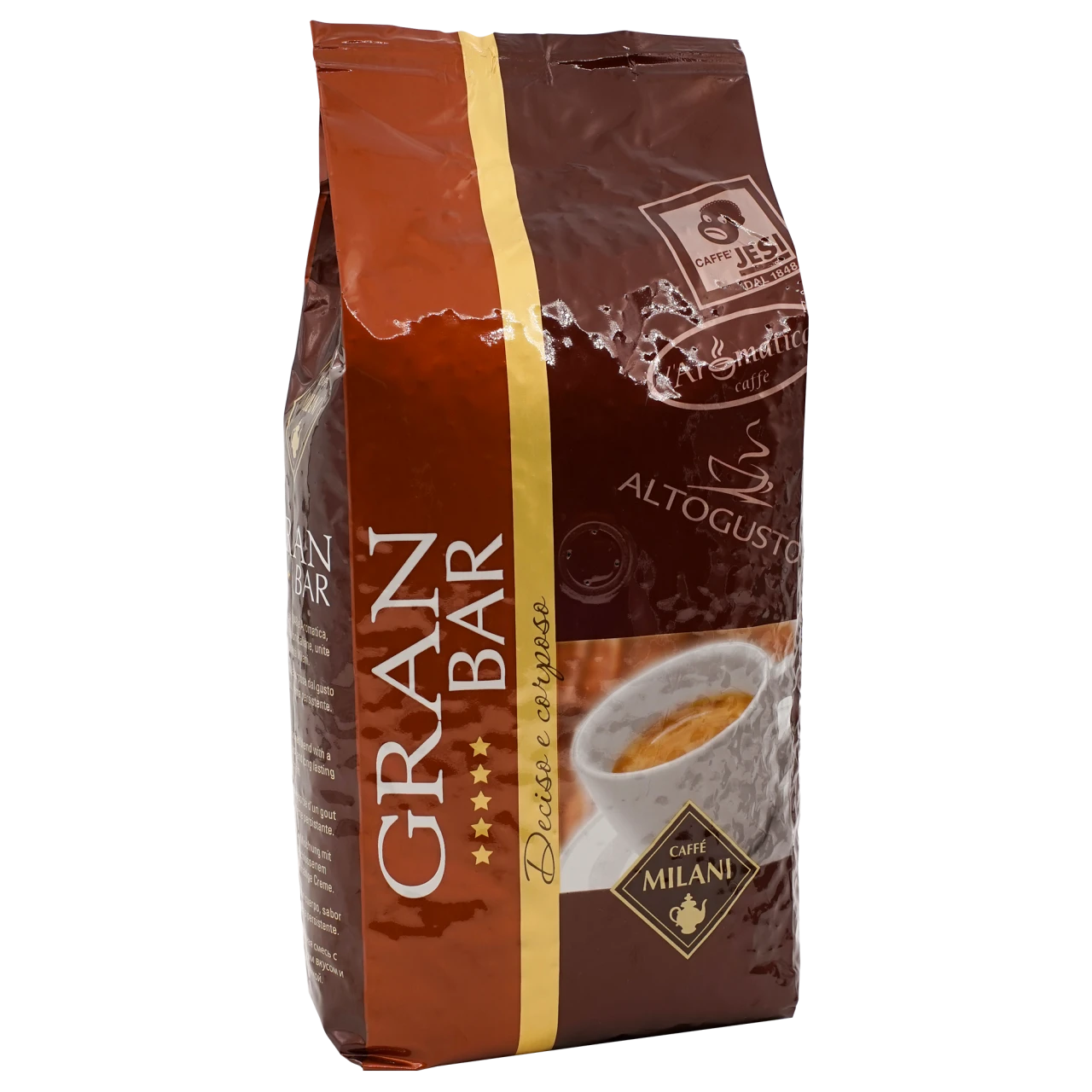 Vollmundig, sahnig, dabei würzig und lang anhaltend präsentiert sich Milani Gran Bar. Die Arabicas aus und werden sehr schön unterstützt und bekommen so z.B. in der Milch genügend Substanz, um auch im Cappuccino/Latte Macchiato den ausgewogenen Charakter zeigen zu können.