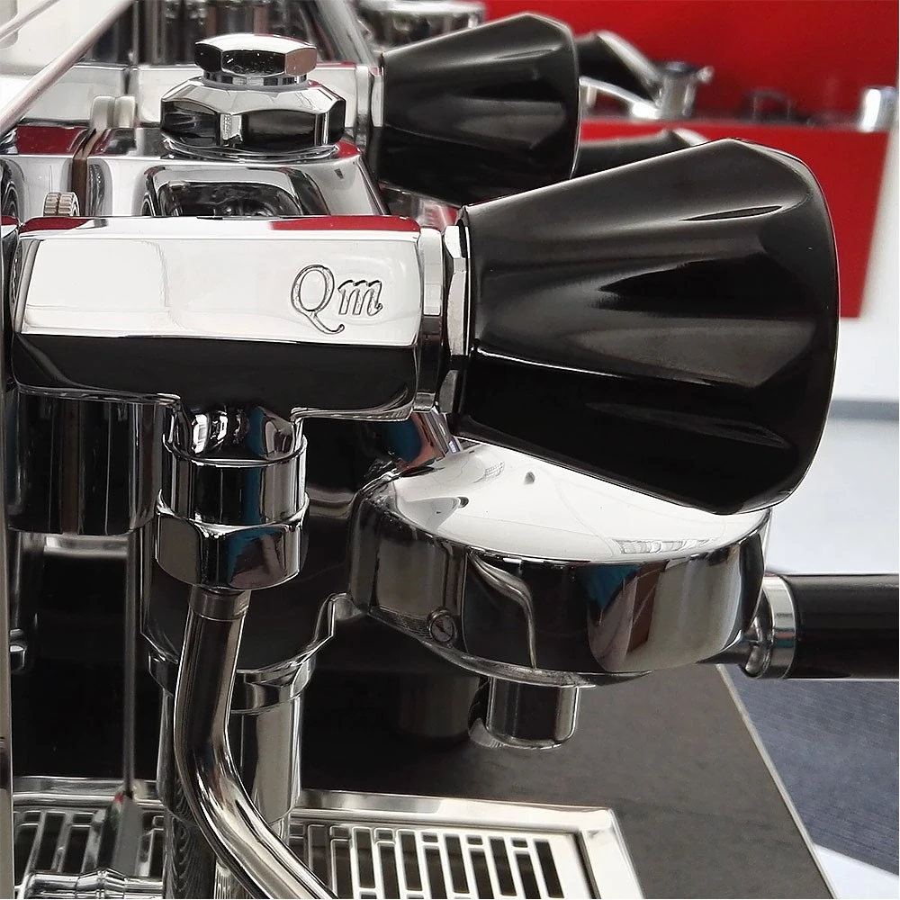 Die von Quick Mill standardmäßig verbauten Ventile und Griffe fanden wir nicht angemessen. Stattdessen lassen wir die Geräte mit den bei den Gastromaschinen üblichen Ventilen und Drehgriffen ausstatten. Die liegen deutlich besser in der Hand und stehen für Qualität, die sie täglich spüren können. Darüber hinaus haben wir die Maschine mit ‚No-Burn‘ Dampfrohren ausgerüstet, an denen man sich nicht mehr die Finger verbrennen kann.
